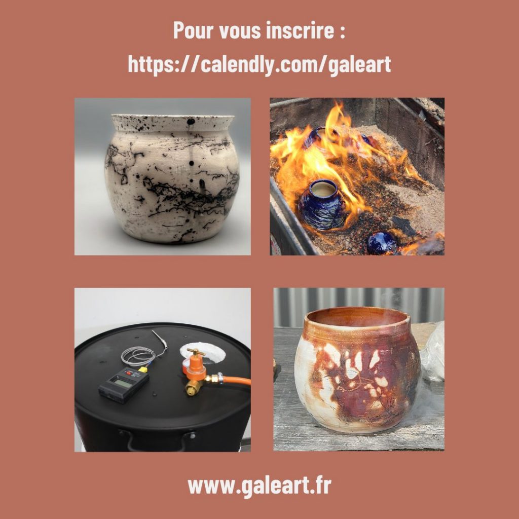 La formation Raku Toulouse : Pas seulement une cuisson Raku mais une formation complète sur le RAKU, retrouvez toutes les dates sur le calendrier : https://calendly.com/galeart