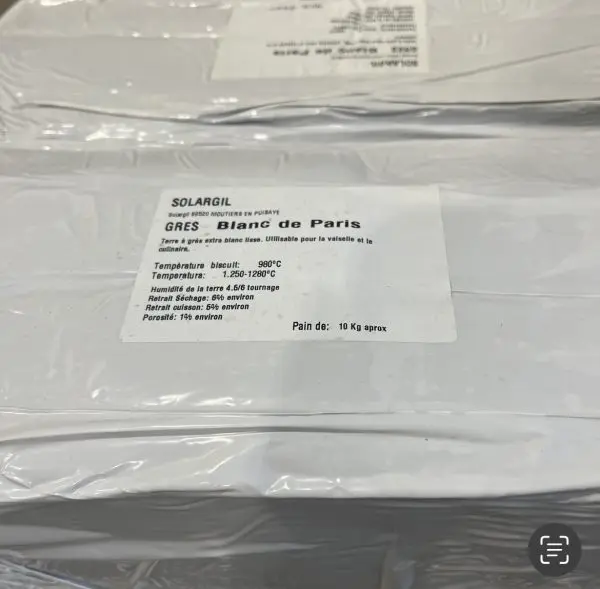 Terre à grès extra blanc lisse, utilisable pour la vaisselle et le culinaire.