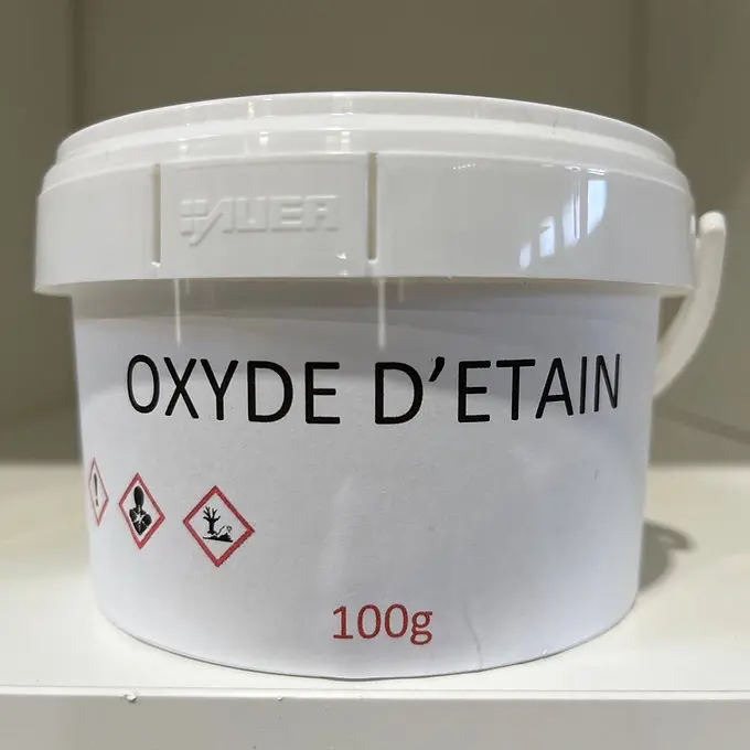 L’oxyde d’étain est un composé céramique précieux utilisé pour ses propriétés de coloration et de brillance dans l’art de la poterie et de la céramique.